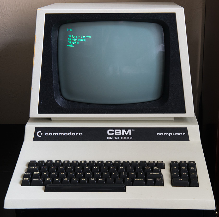 A Televideo dumb terminal, introduced in 1981, driven by the computer on the left.