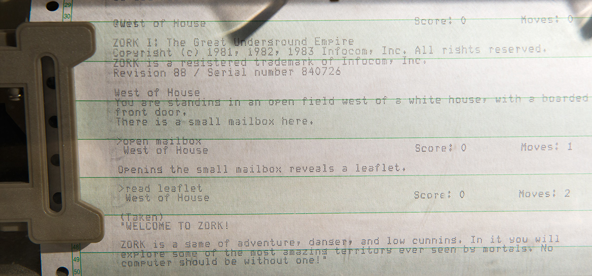 DEC connected to my Mac Pro (OS X 10.7.5) with a null modem cable and a RS-232 to USB converter. I downloaded and compiled an interpreter (Frotz) that can load Zork as well as Aventure, shown above in dumb terminal mode.