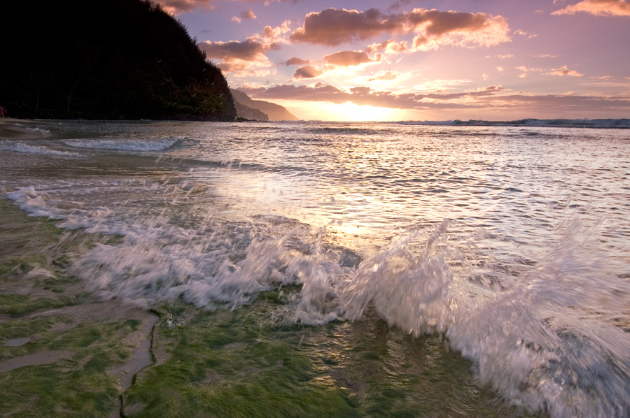 Sunset in Poipu. I used a graduated density filter to prevent the foreground from becoming too dark