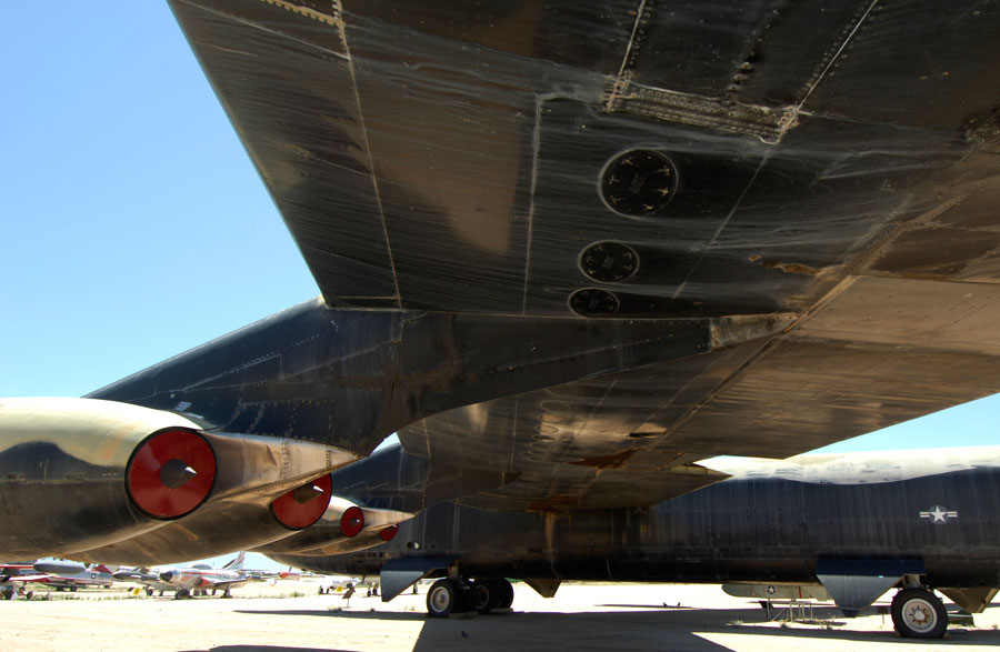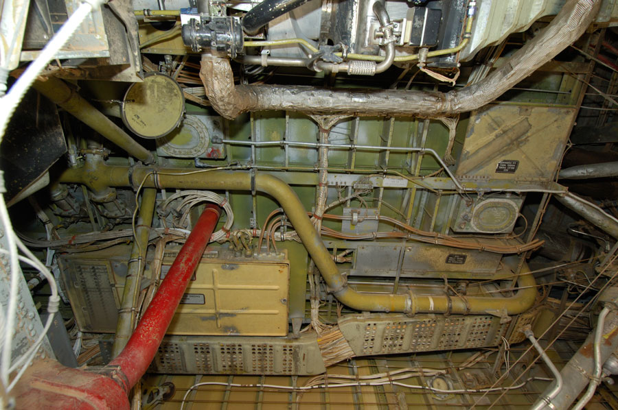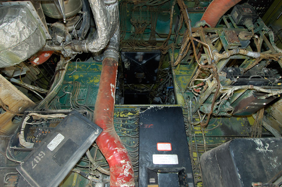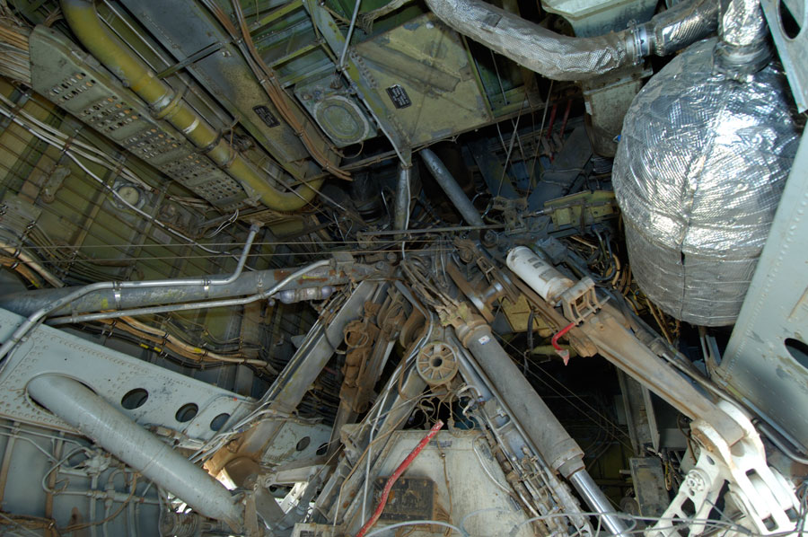 Looking in the B-52 wheelwell, yet another vast array of tangled pulleys, cables, and wires that somehow functioned in unison