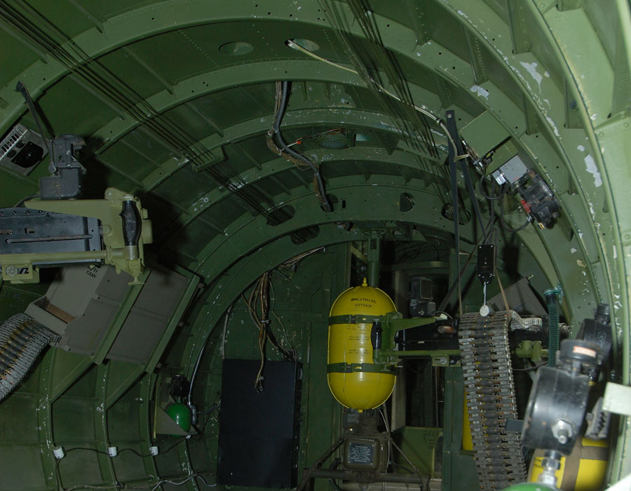 A gunner's bubble on the belly of a B17. Guns on either side can be