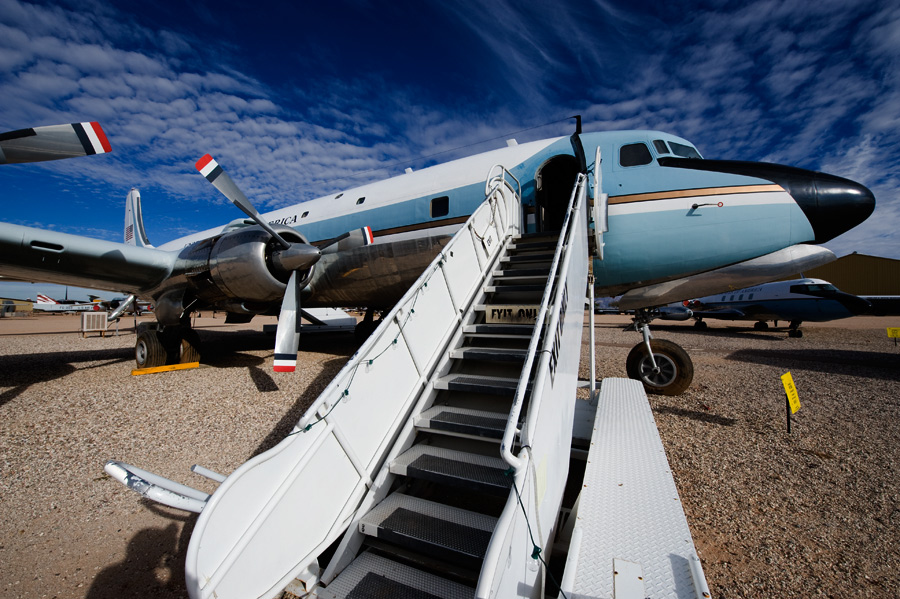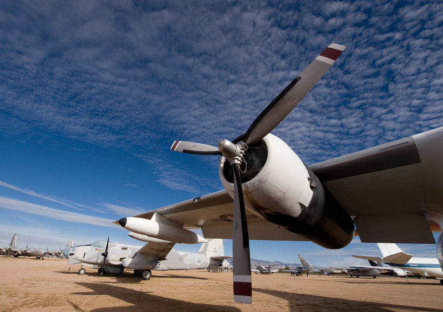 Standing under the wing, four engines can be seen for a total of eight engines on this aircraft
