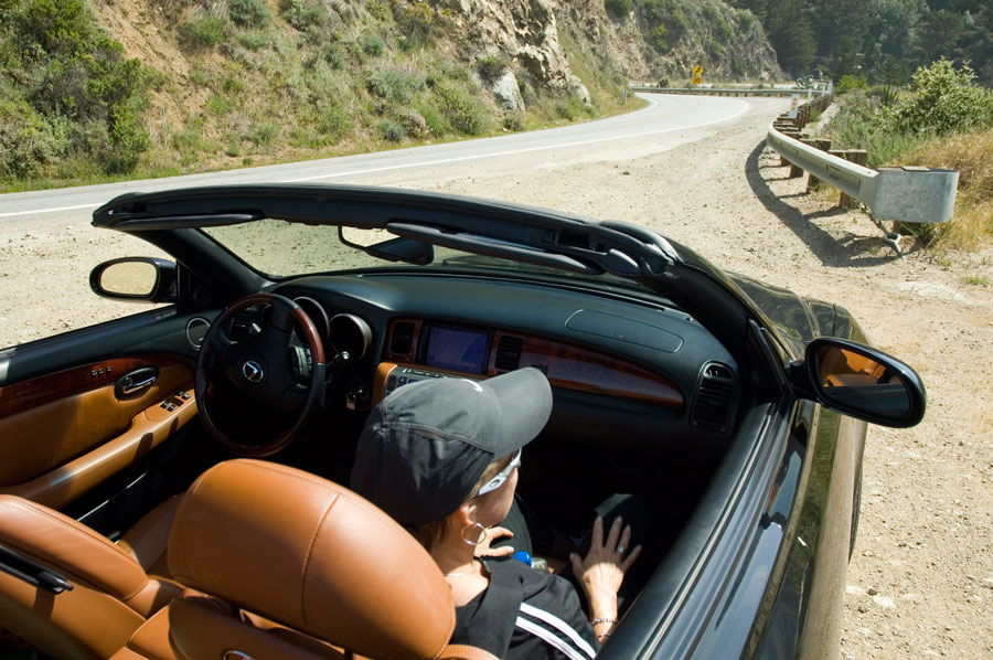 Indulging on the Inn's complimentary Lexus while enjoying Highway 1. (d)